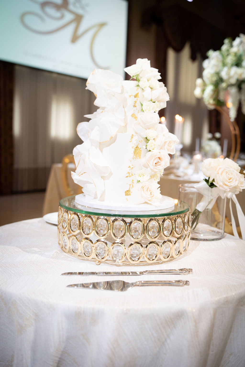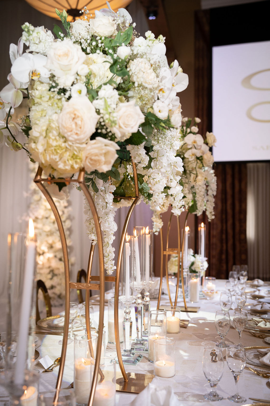 “We wanted our wedding to feel like a modern fairytale, clean whites, cascading florals, candlelight, and soft gold accents to create a look that was both luxurious and romantic.